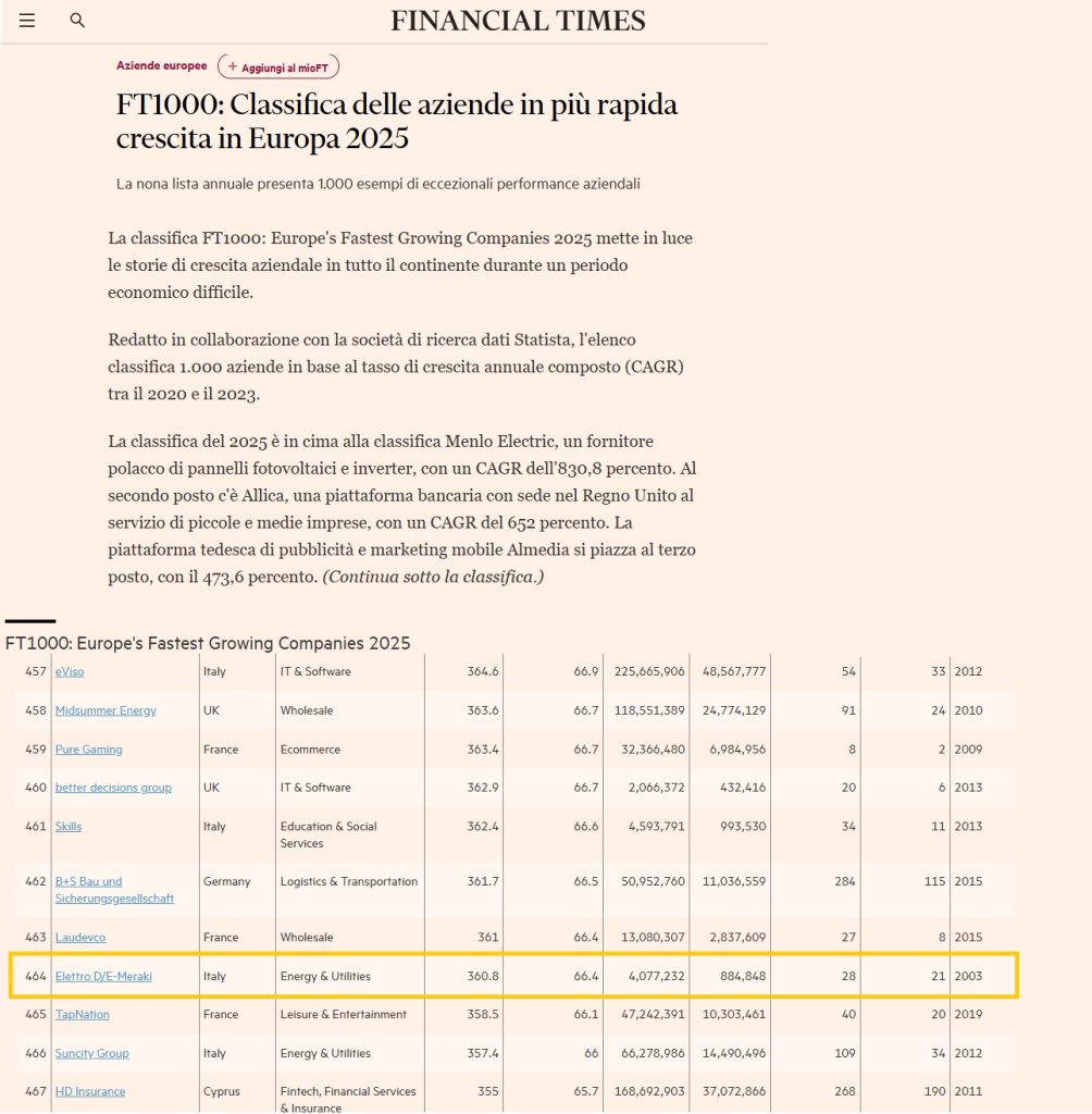 Siamo orgogliosi di annunciare che ElettroD è stata inserita nella classifica FT 1000 – Europe’s Fastest Growing Companies 2025, pubblicata dal Financial Times in collaborazione con Statista, conquistando il 464° posto tra le aziende europee a più alta crescita.